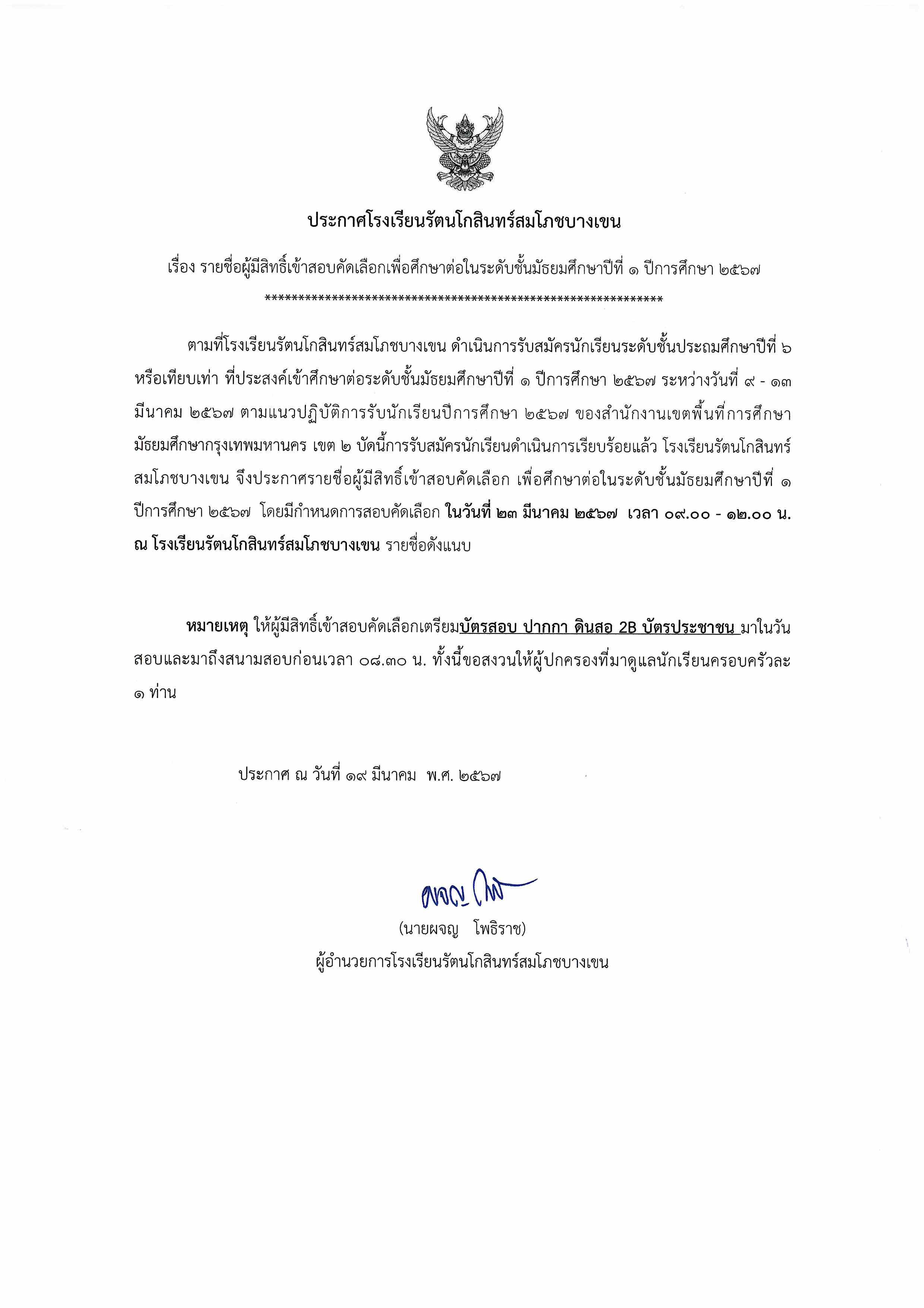 ระบบรับสมัครนักเรียนโรงเรียนรัตนโกสินทร์สมโภชบางเขน